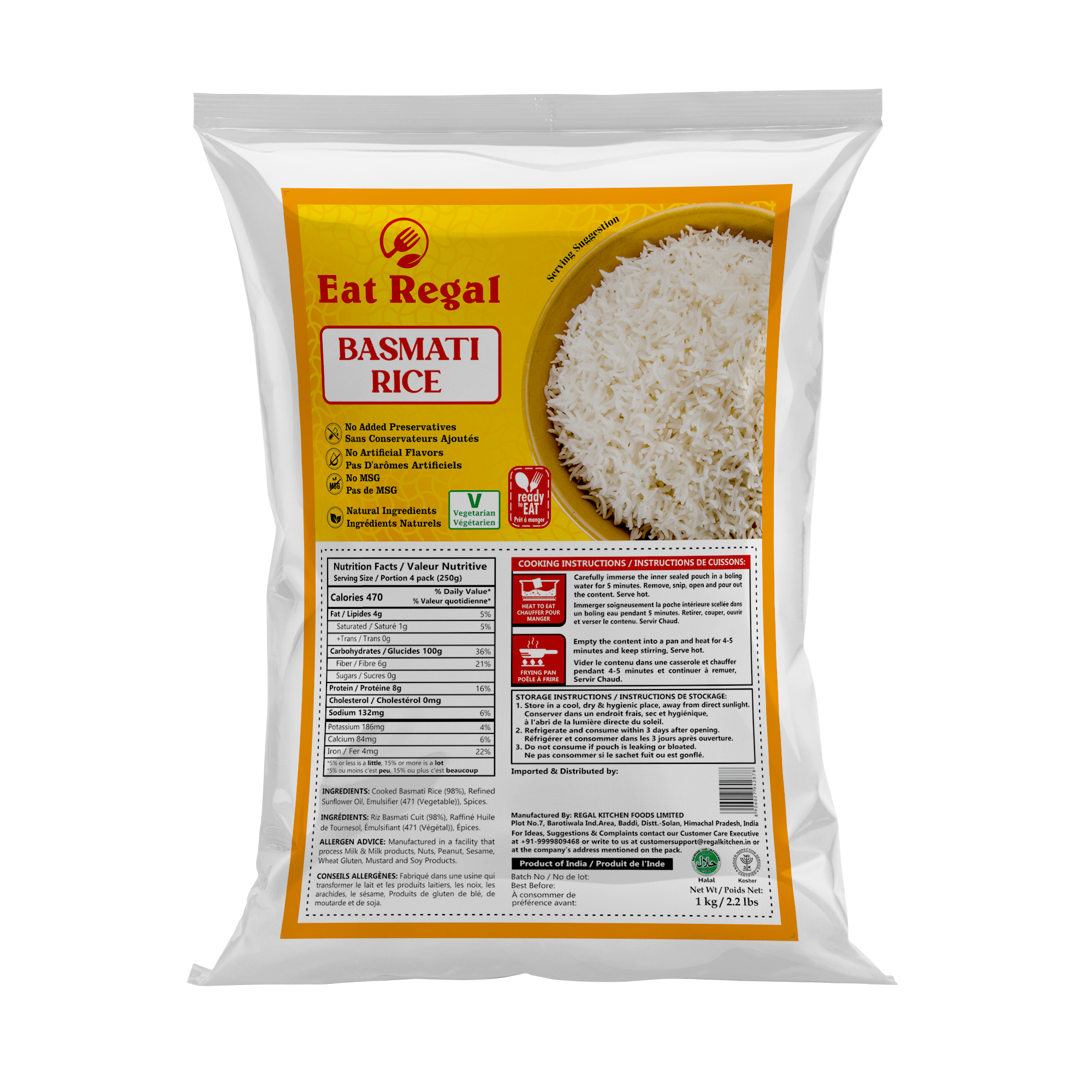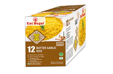 Eat Regal, a paradise for all the rice eaters. It offers a plethora of varieties of Ready to Eat Staple Rice, Healthy Grains and Flavored rice that guarantees to give you a royal experience as you can pamper your taste buds with delicacies without the hassle of cooking, a perfect delicious quick meal to treat you just like a royalty. Our nutritious Ready to Eat rice includes Staple rice, Healthy grains and Flavored rice boasting of different packaging variants. With products like Basmati rice, Jasmine Rice and Butter Garlic Rice, this brand is perfect for people belonging to the Western countries and Asia Pacific Region.